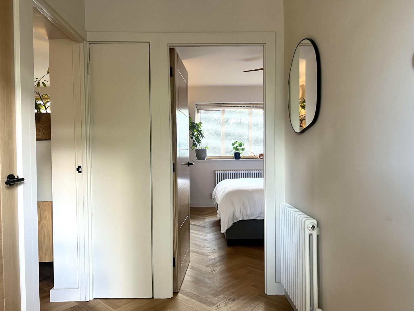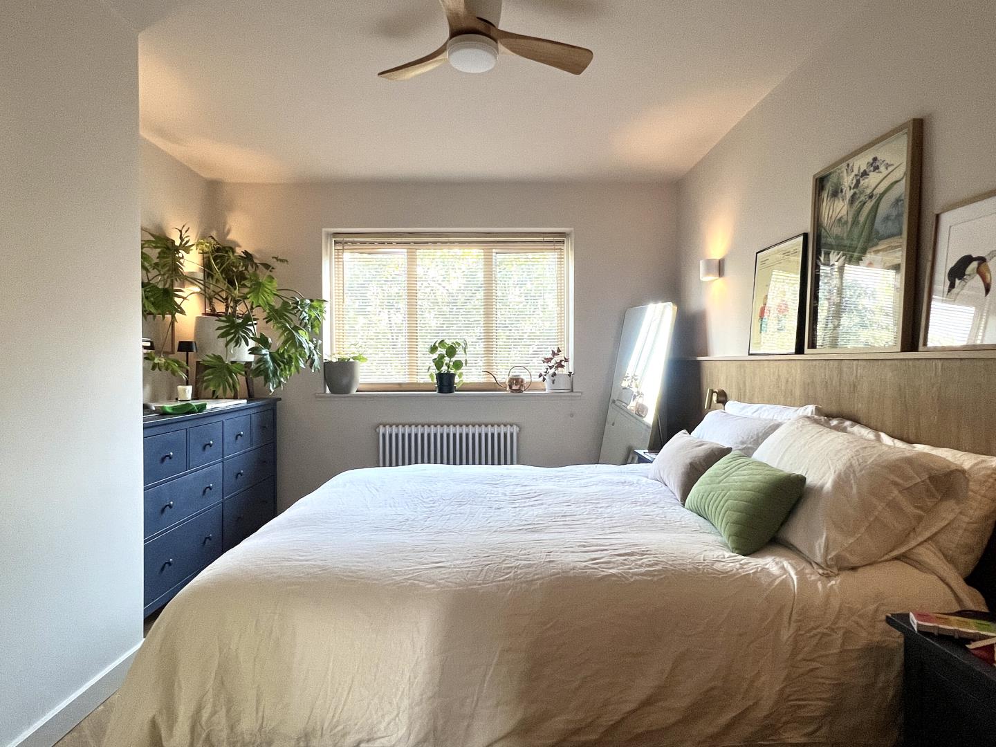 This bright and airy flat has been fully refurbished in a considerate mid-century modern style that resonates with the style of the building and makes the most of dual aspect space. Bespoke design details and high quality finishes make this a unique home in a fantastic location, just a short walk from both Kensington High Street and Notting Hill Gate. From the first floor, views out are on to mature trees and period properties, with sun pouring through wall to wall south facing windows. Internally, space has been maximised, with a good sized kitchen, dedicated laundry cupboard and generous walk in rain shower. Integrated feature lighting and a ceiling fan in the bedroom add an extra touch that sets this property apart.