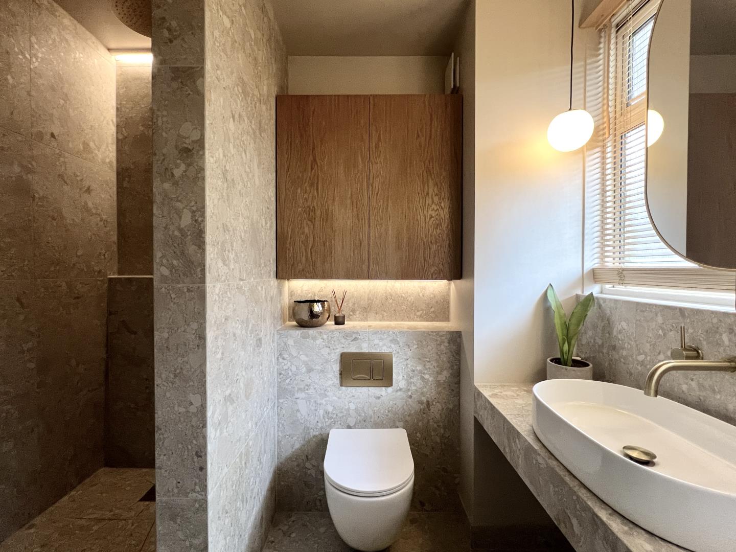 Bathroom Extractor fan. Heated towel rail. Rain fall shower. Shaver point. Walk-in shower. Washbasin with mixer tap. Toilet. Rectangular room. Underfloor heating. Storage. Recently Modernised. Mirror. Porcelain Tiles to floor. Windows to rear. Kitchen Fitted with a matching range of base & eye level units. Including matching breakfast bar. Appliances are Integrated. Appliances by Bosch. Counter tops - Quartz. Dishwasher. Extractor hood Overhead. Fully fitted kitchen. Hob - Induction. U-Shaped room. Underfloor heating. Recently Modernised. Porcelain Tiles to floor. Windows to rear. Living room Lounge/Dining Room. Rectangular room. Herringbone Parquet floor. Door to front. Windows to front. Bedroom Rectangular room. Herringbone Parquet floor. Windows to front. Utility cupboard Counter tops - Wood. Tumble Dryer. Washing machine. Rectangular room. Storage. Porcelain Tiles to floor.