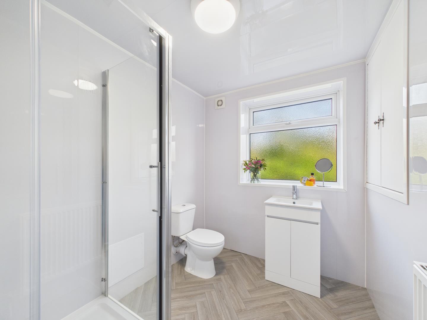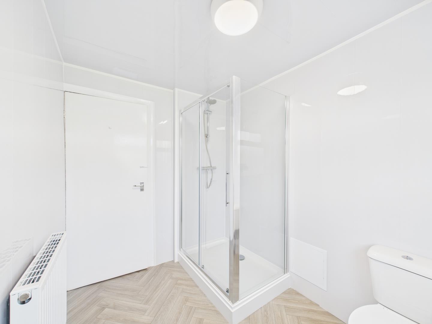 ✔ A contemporary shower room, fitted with a modern suite in a neutral finish.
