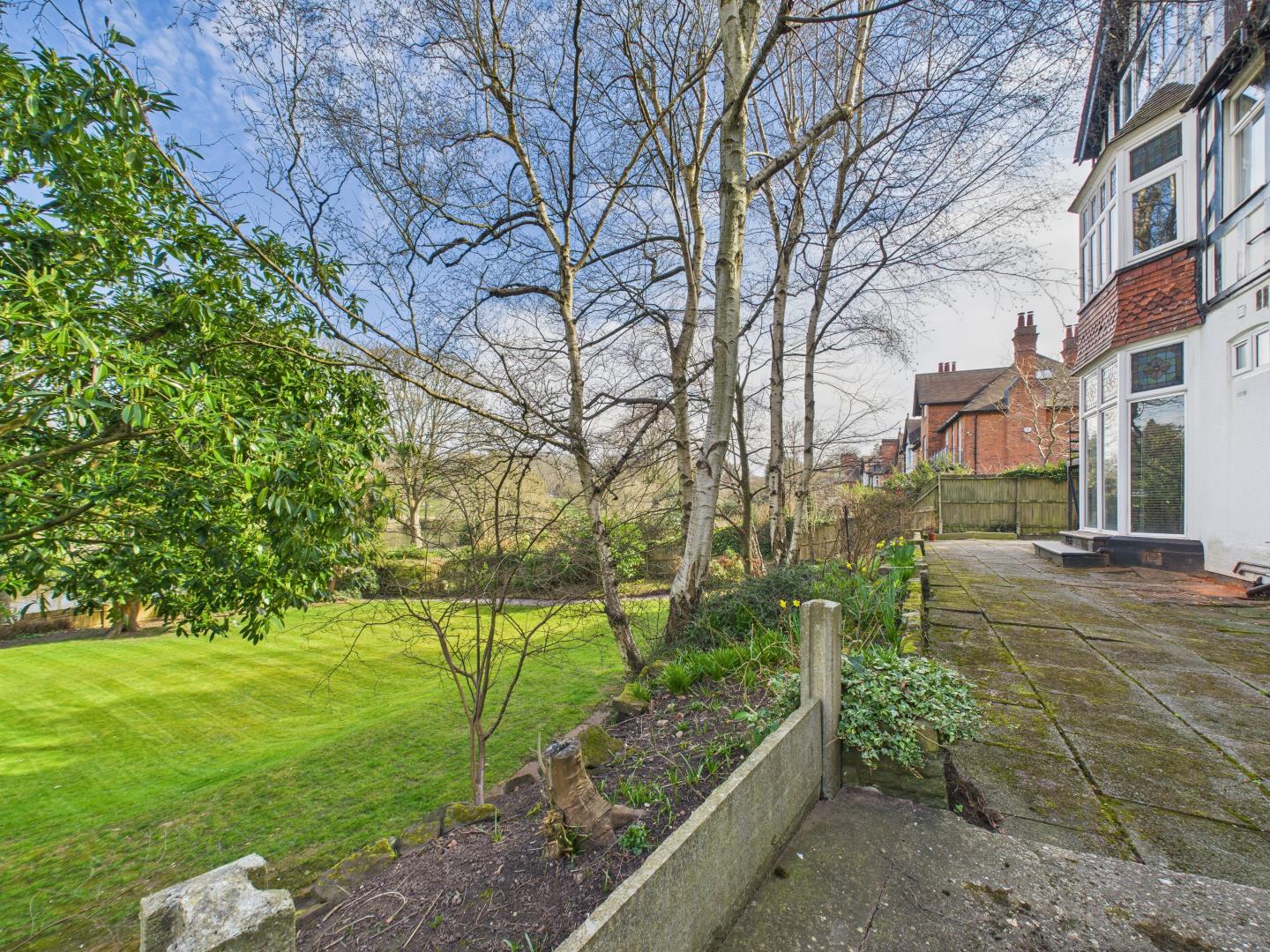 This thoughtfully designed apartment boasts its own private entrance, leading directly to the rear communal garden—a tranquil green space maintained to an excellent standard. The garden offers stunning views over Moseley Park and its lake, a picturesque setting all year round.